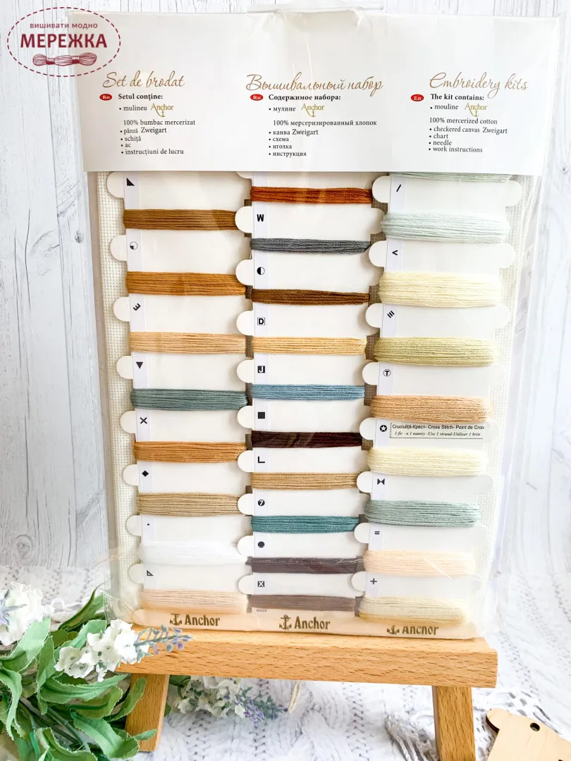 В наборах тканина Zweigart, муліне Anchor.