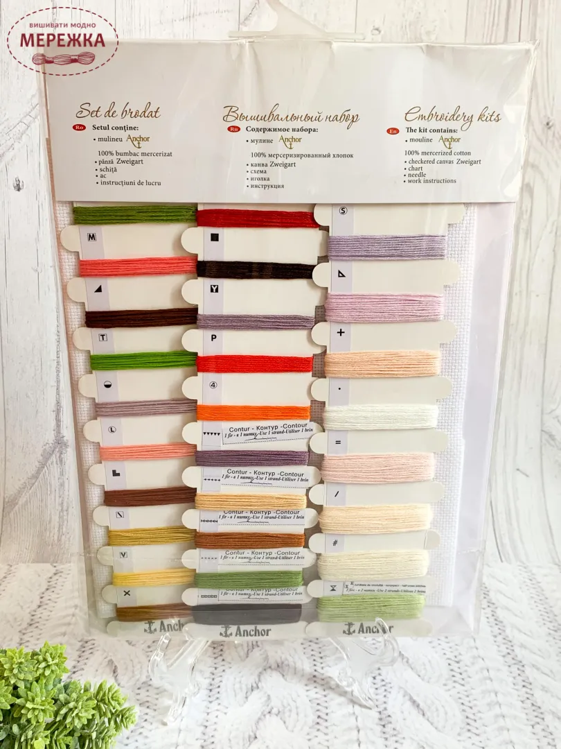 В наборах тканина Zweigart, муліне Anchor.