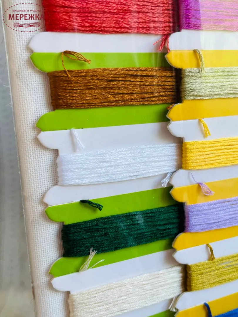 До набору входять матеріали провідних виробників, а саме: тканина Zweigart, муліне DMC.