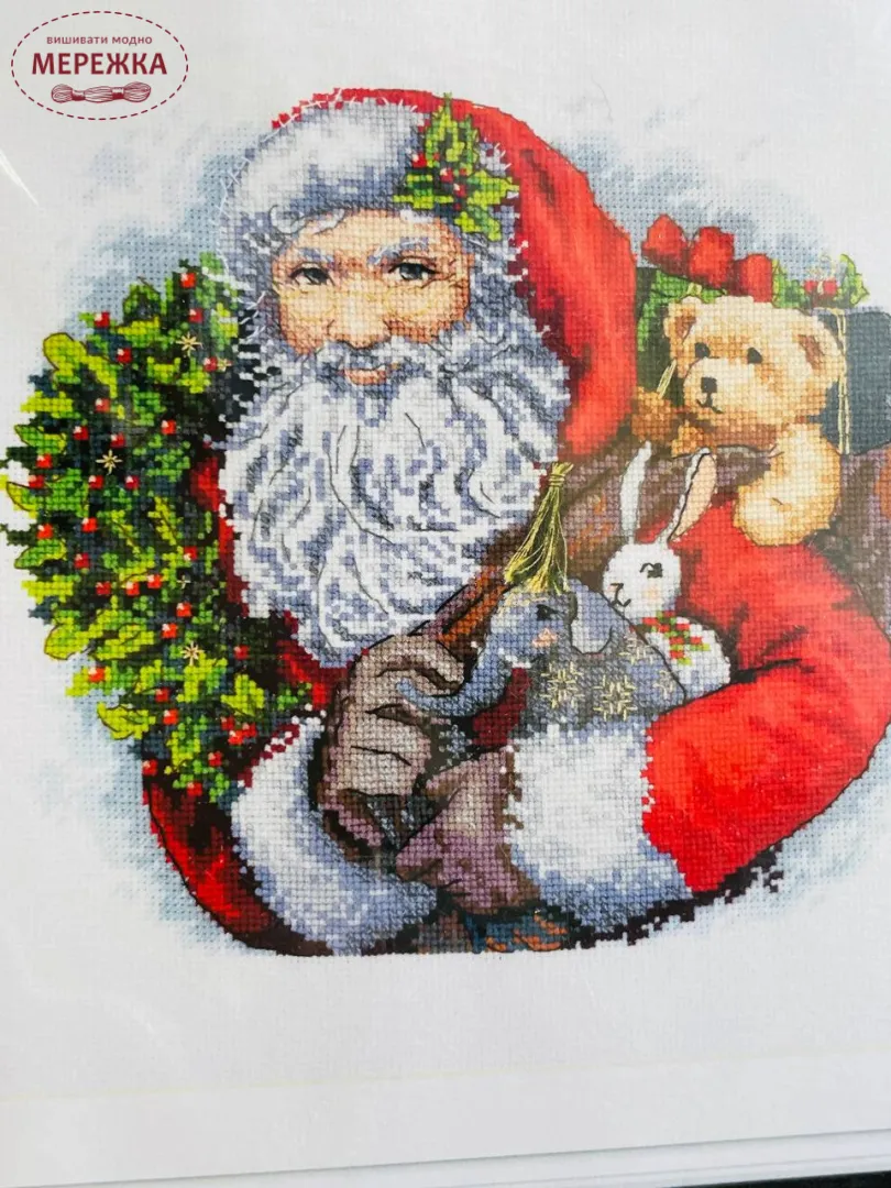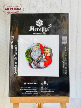 Набір для вишивання хрестиком Merejka Санта з вінком К-133