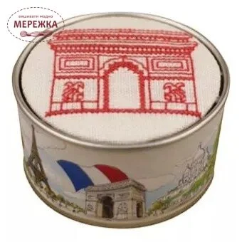 Набір для вишивання хрестиком - кругла коробка із зображенням червоної Тріумфальної арки.