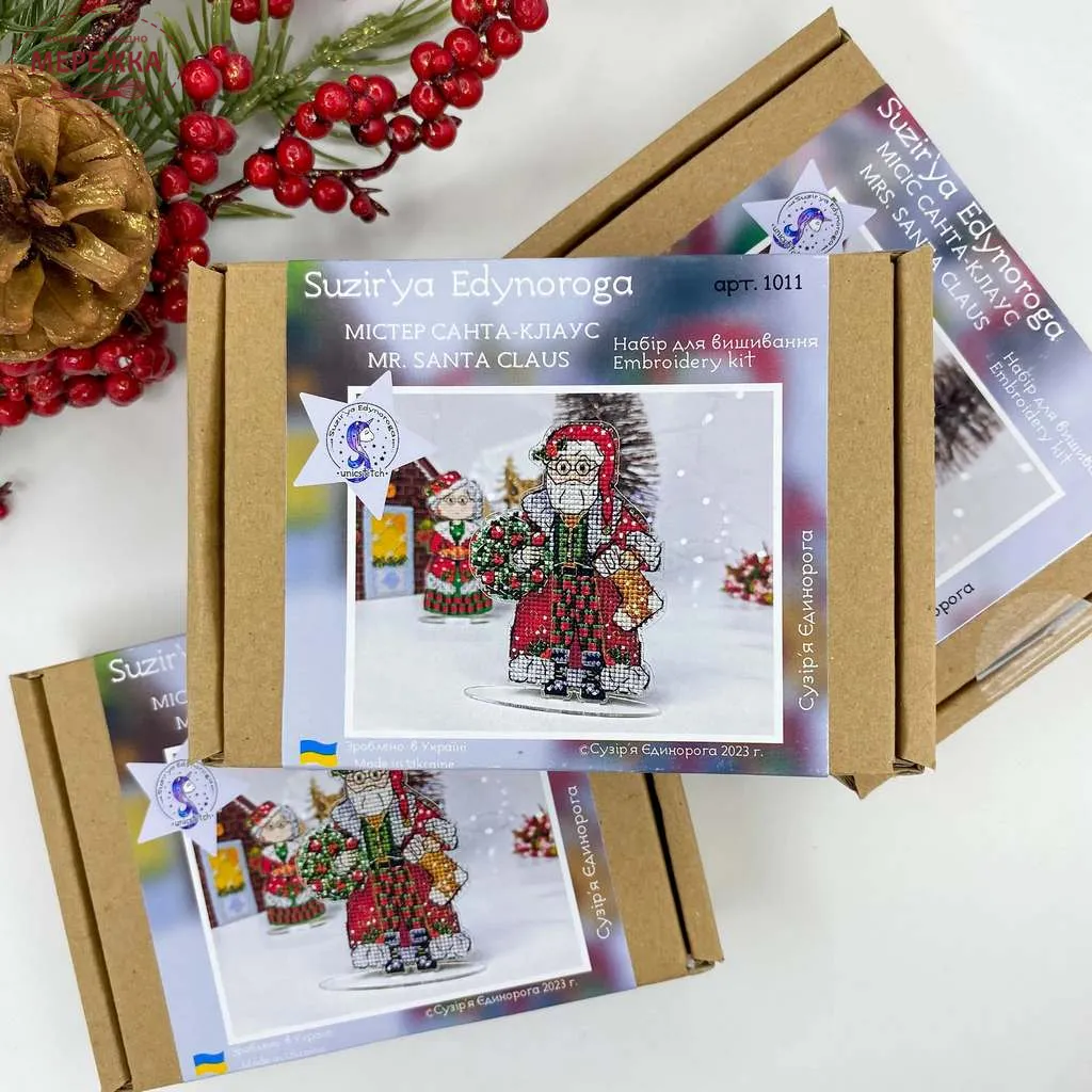Чудовий набір "Містер Санта-Клаус" для вишивання хрестиком та бісером від українського дизайнера та виробника "Сузір’я Єдинорога" (Наталя Лужанська) .