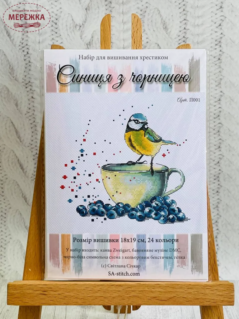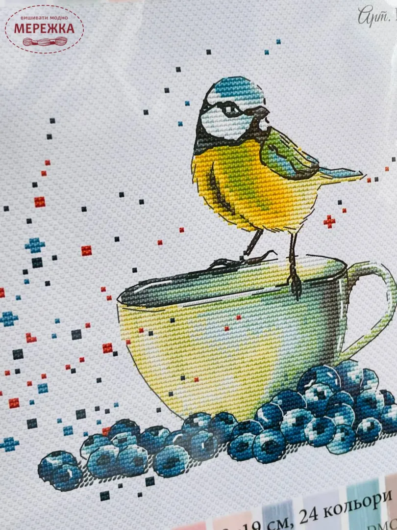 Набір для вишивання хрестиком Синиця з чорницею П001