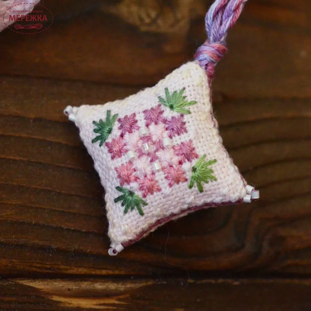 В схемі присутні декоративні стібки: (віялові, вічка, петлевий, болгарський хрестик), а також мікробісер бісер 15/0.