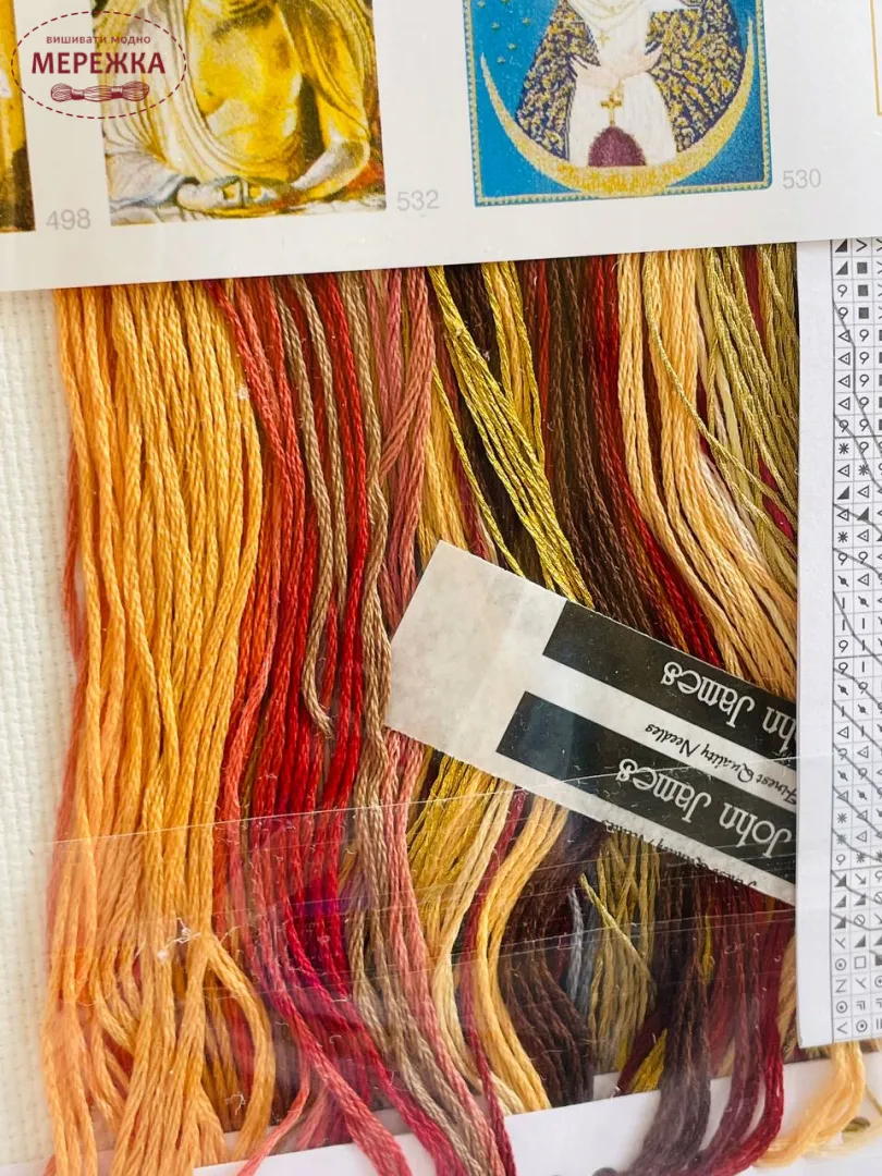 Набір чудово укомплектований, схема чітка та зрозуміла, нитки у наборі фірми DMC, тканина найкращої якості, фірми Zweigart.