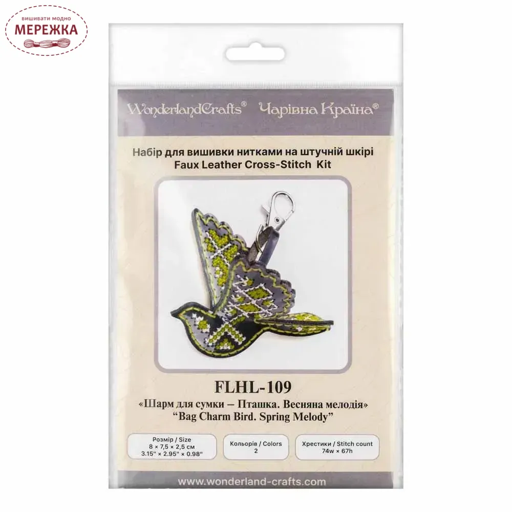 Набір для вишивання хрестиком WonderlandCrafts шарм для сумки на штучній шкірі FLHL-109