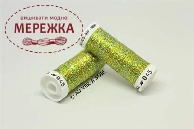 Металізована нитка від французького виробника Au Ver à Soie дуже м'яка та одночасно міцна, найтонший варіант металізованої нитки.