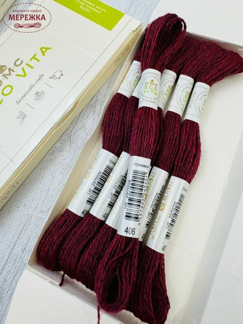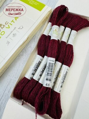 Нитка не підлягає діленню. Товщина нитки Eco Vita орієнтовно відповідає трьом ниткам звичайного муліне.