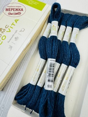 Нитка не підлягає діленню. Товщина нитки Eco Vita орієнтовно відповідає трьом ниткам звичайного муліне.