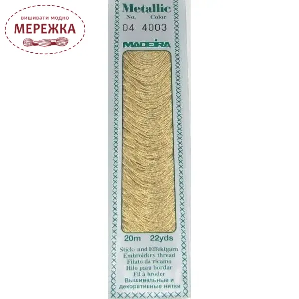 Металізовані нитки Madeira Metallic Mouline #4 додадуть вашій вишивці вишуканість та підкреслять потрібні деталі дизайну.