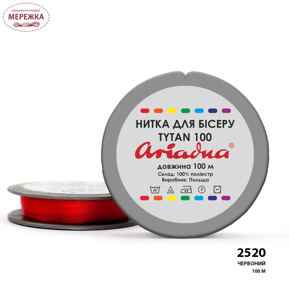 Нитки для вишивання бісером Ariadna Tytan 100, колір червоний (100 метрів) 2520/100