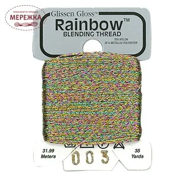 Glissen Gloss Rainbow Blending Thread - металізована нитка виробництва США. Часто зустрічається у комплектації до схем від Stoney Creek.