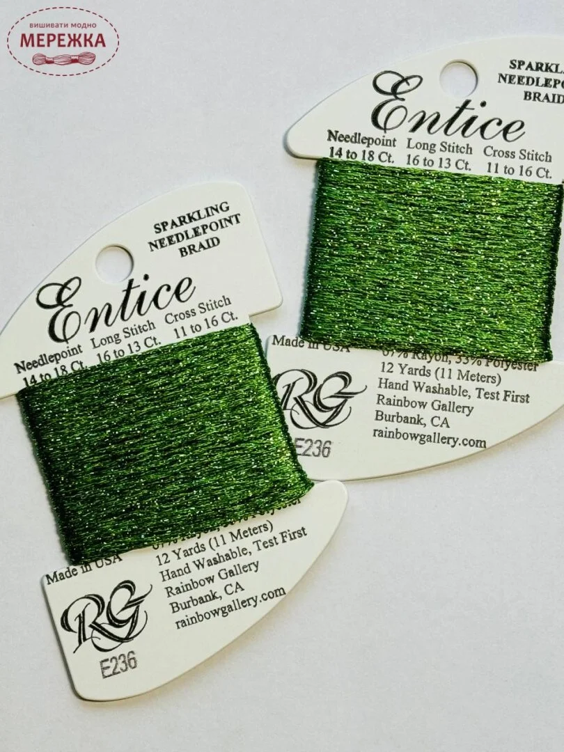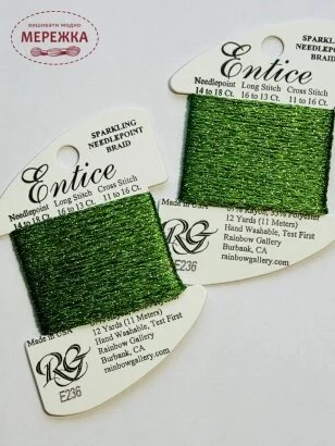 Нитка Entice - шовкова нитка з домішками металіку від Rainbow Gallery (виробництва США ).