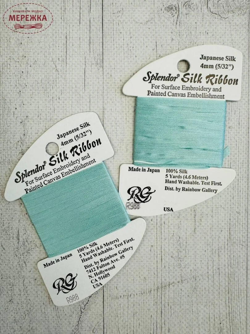 Щоб втілити ваші найкреативніші й оригінальні ідеї у вишивці та інших видах рукоділля, виробник Rainbow Gallery пропонує чудовий асортимент японського шовку, пофарбованого вручну у вигляді шовкових стрічок шириною 4 мм.