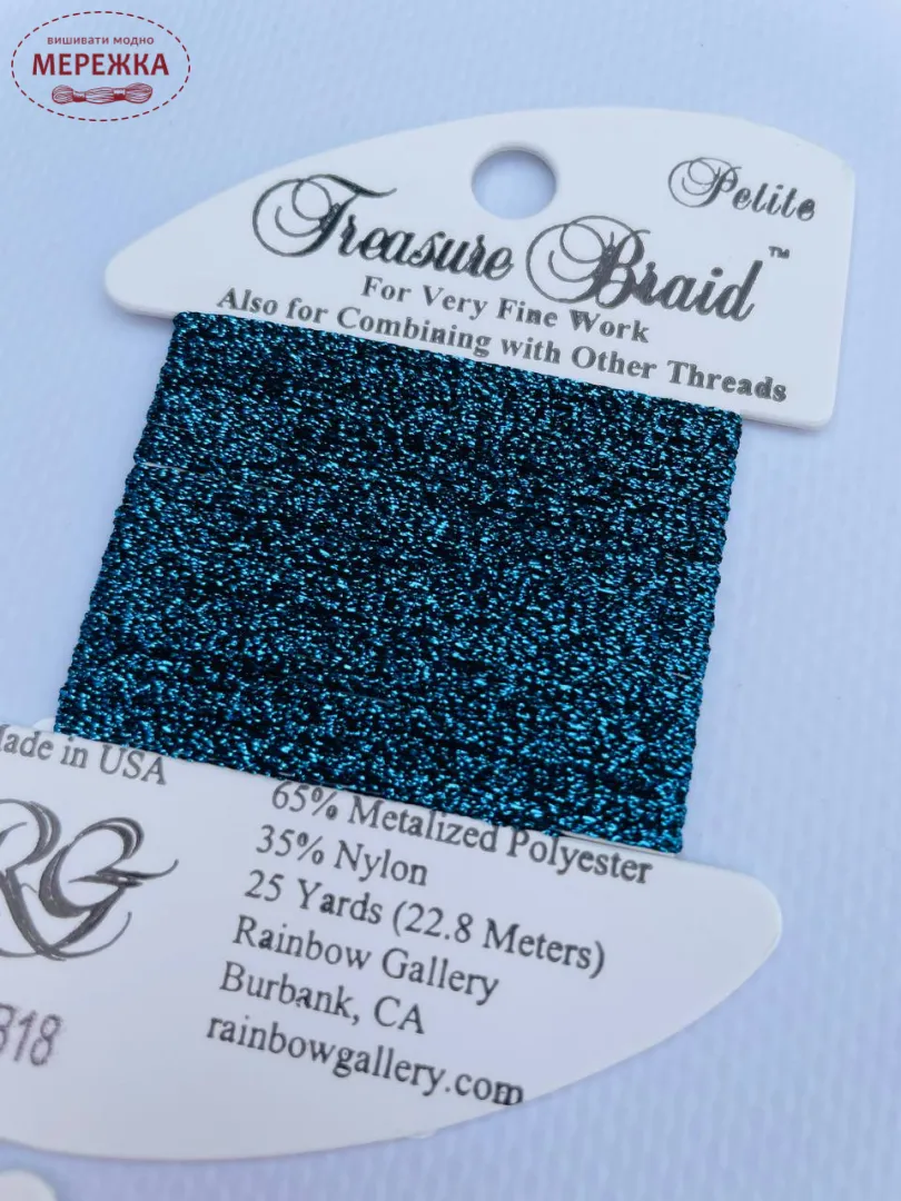 Treasure Braid Petite - металізована нитка від Rainbow Gallery (виробництва США або Японії).