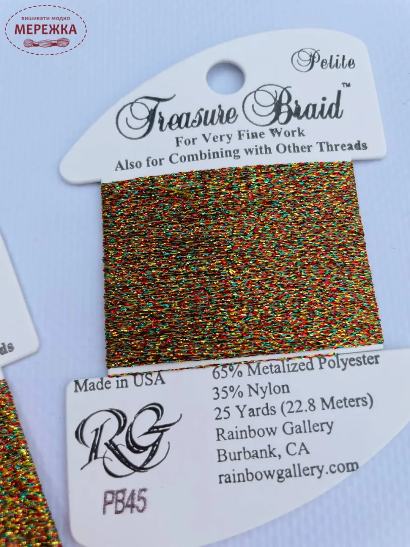 Treasure Braid Petite - металізована нитка від Rainbow Gallery (виробництва США або Японії).