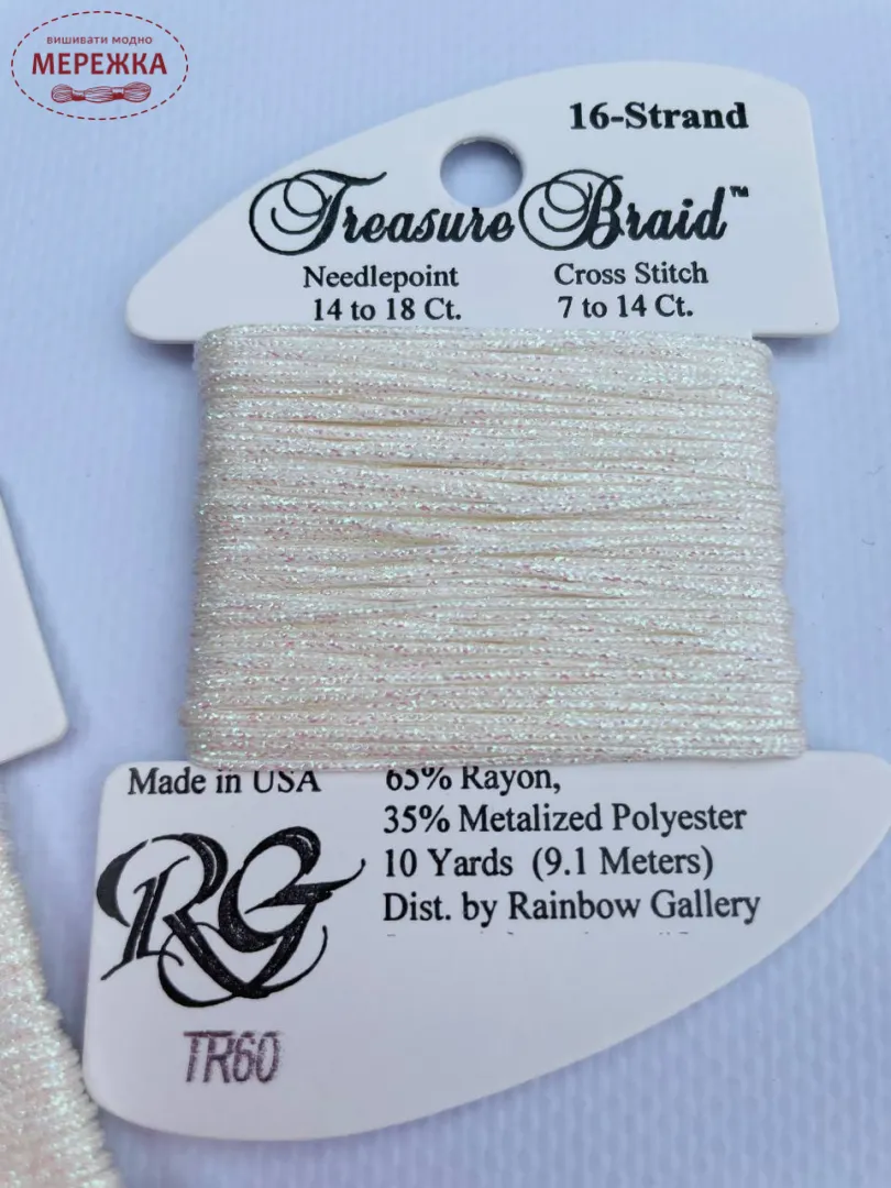 Treasure Braid - металізована нитка від Rainbow Gallery (виробництва США, Англії або Японії).