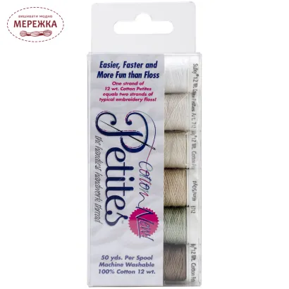 Одне пасмо 12 wt. cotton petites дорівнює двом ниткам нитки для вишивання.