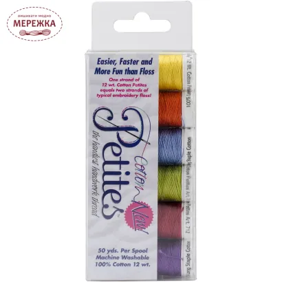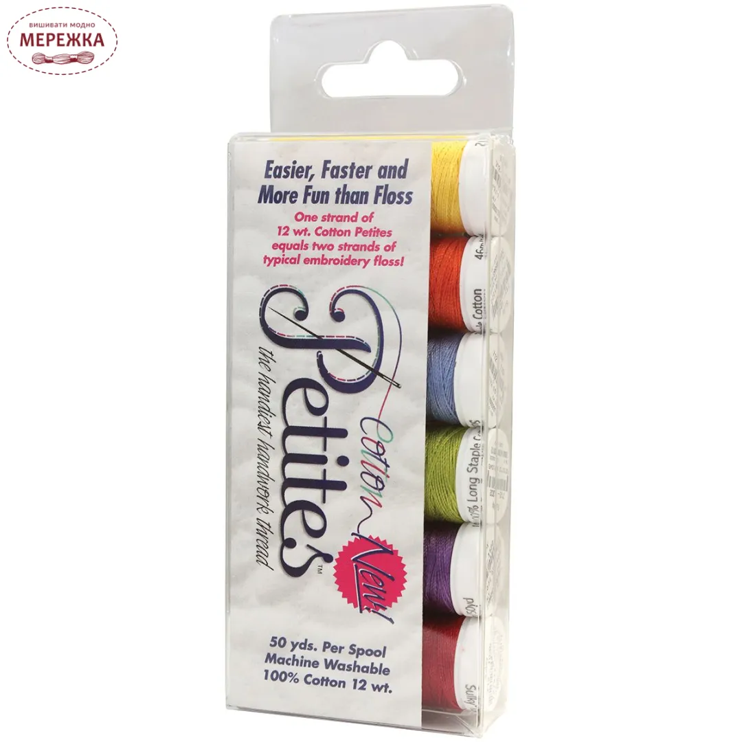 Одне пасмо 12 wt. cotton petites дорівнює двом ниткам нитки для вишивання.