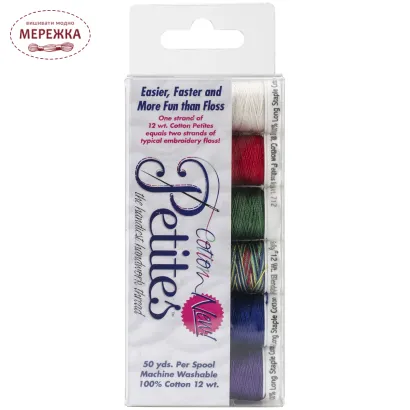 Одне пасмо 12 wt. cotton petites дорівнює двом ниткам нитки для вишивання.