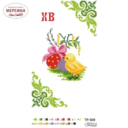 Схема для вишивання бісером та нитками великоднього рушника ТРд509 від виробника "Барвиста вишиванка". З зображенням великодніх писанок і курчатка.