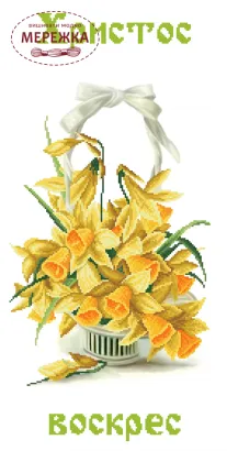 Схема для вишивання бісером великоднього рушника РП-031 від виробника "Бусинка". З зображенням нарцисів.