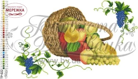 Схема для вишивання бісером спасівського рушника ТР022 від виробника "Барвиста вишиванка". З зображенням фруктів у кошику.