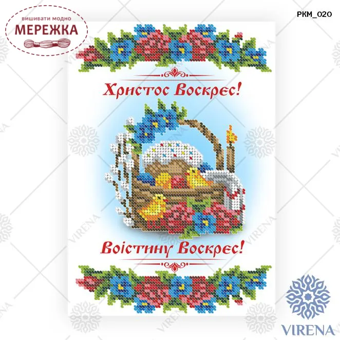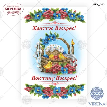 Схема для вишивання бісером дитячого великоднього рушника РКМ-020 від виробника "Virena". З зображенням великоднього кошика.