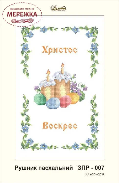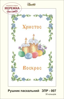 Схема для вишивання бісером великоднього рушника ЗПР-007 від виробника "Золота підкова". З зображенням паски та писанок.