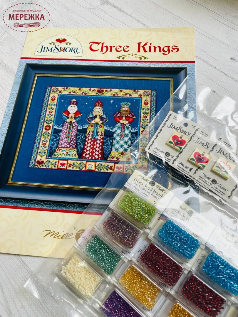Cхема для вишивання JimShore Three Kings + бісер та гудзики JSP006E