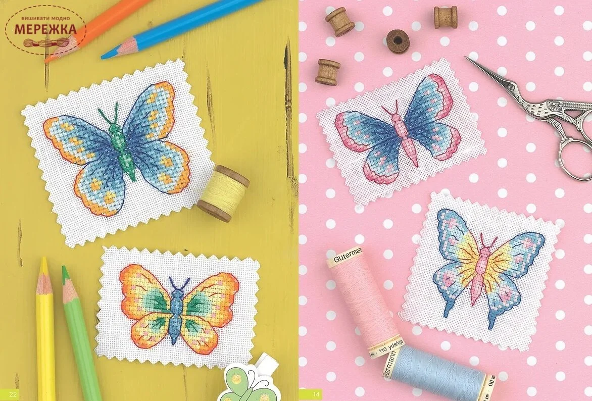Вибирайте невеликі малюнки для створення вітальних листівок, підставок, гаманців і прикраси одягу, а також великі малюнки, які можна використовувати для виготовлення картин в рамках, подушок, кухонних рушників і обкладинок для блокнотів. Включено легкодоступні таблиці кольорів і символів.
