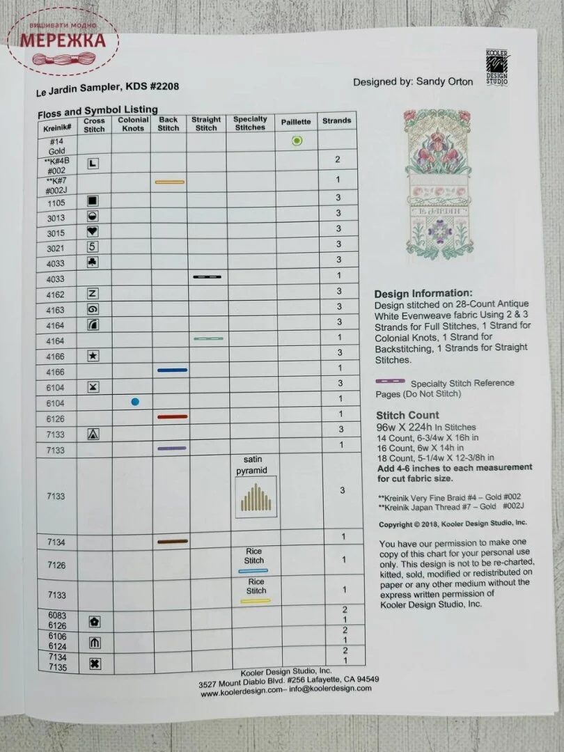 Схема для вишивання від Kooler Design Studio "Le Jardin Sampler.