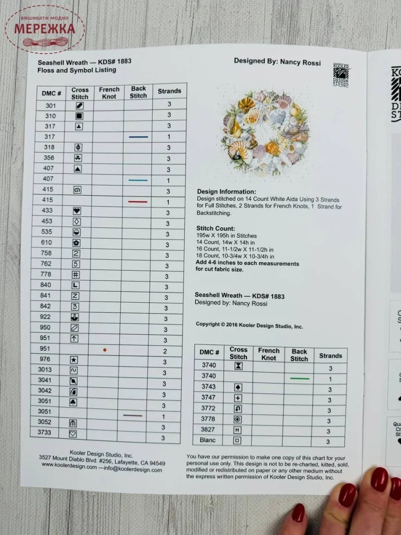 Схема для вишивання від Kooler Design Studio "Seashell Wreath".