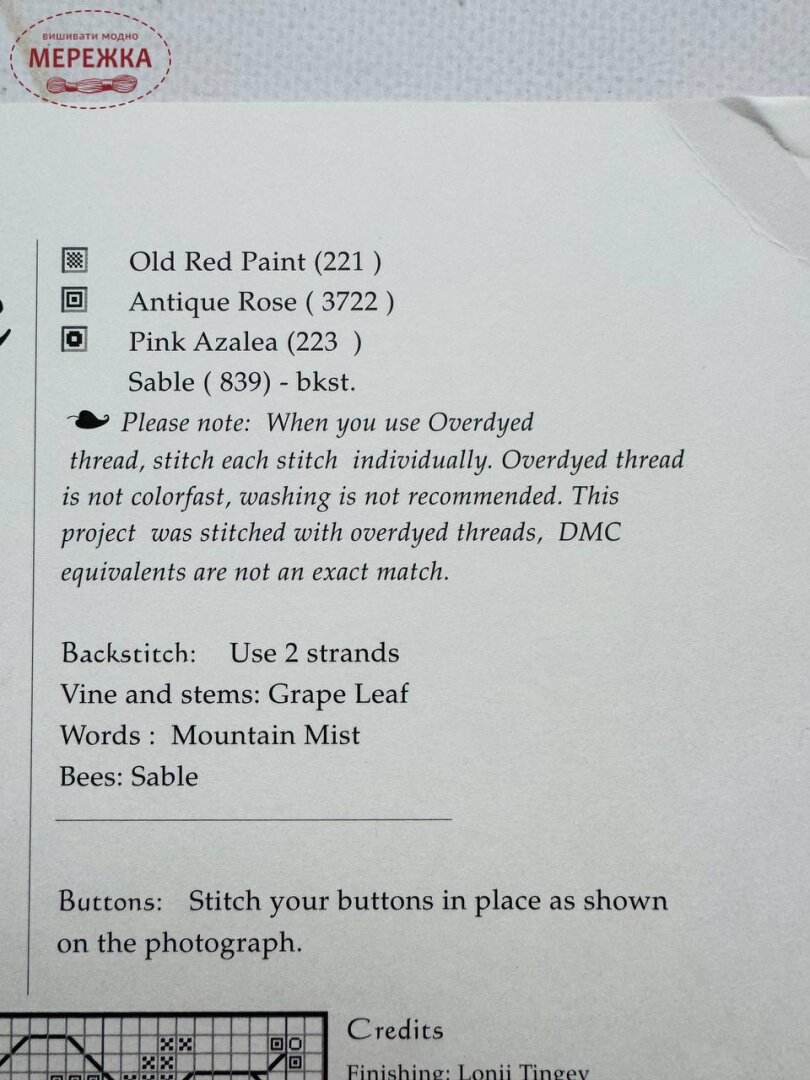 Всі необхідні матеріали (тканину та муліне) ви знайдете у нашому магазині. Якщо нитки від деяких виробників відсутні в нашому магазині, ми разом зможемо підібрати коректну заміну на муліне DMC.