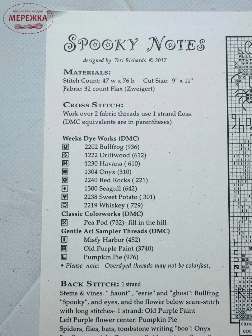 Схема для вишивання хрестиком Spooky Notes від Shepherd's Bush.