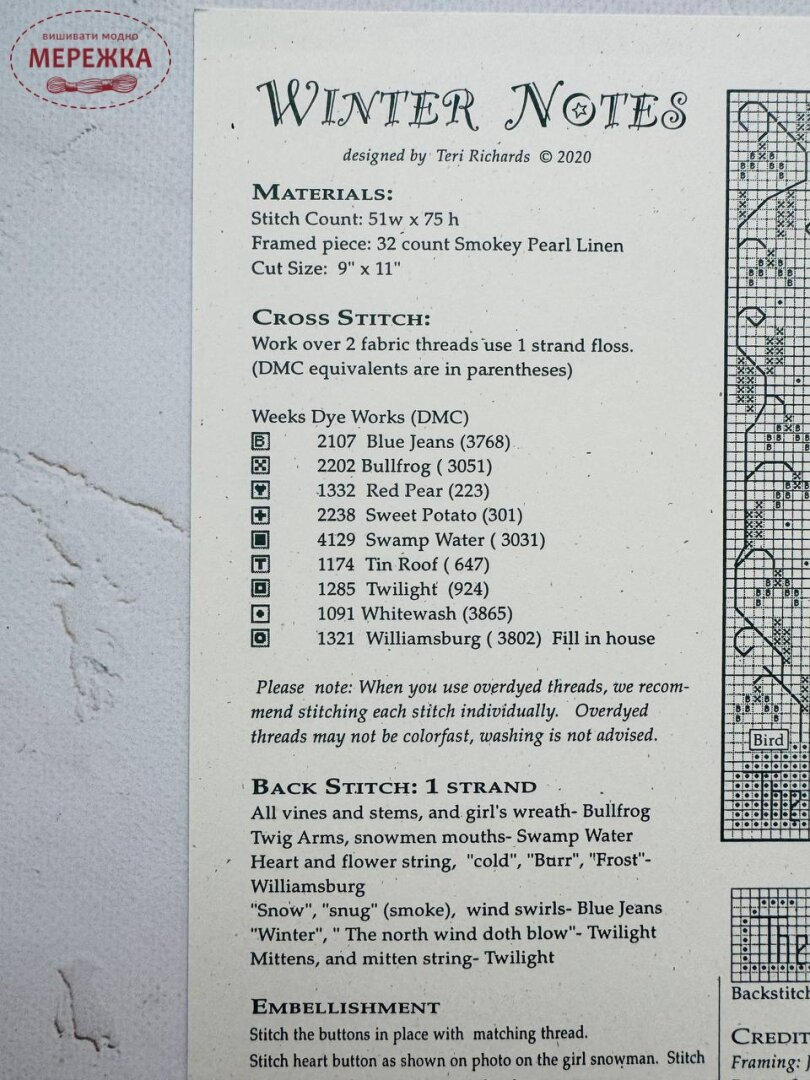 Схема для вишивання хрестиком Winter Notes від Shepherd's Bush.