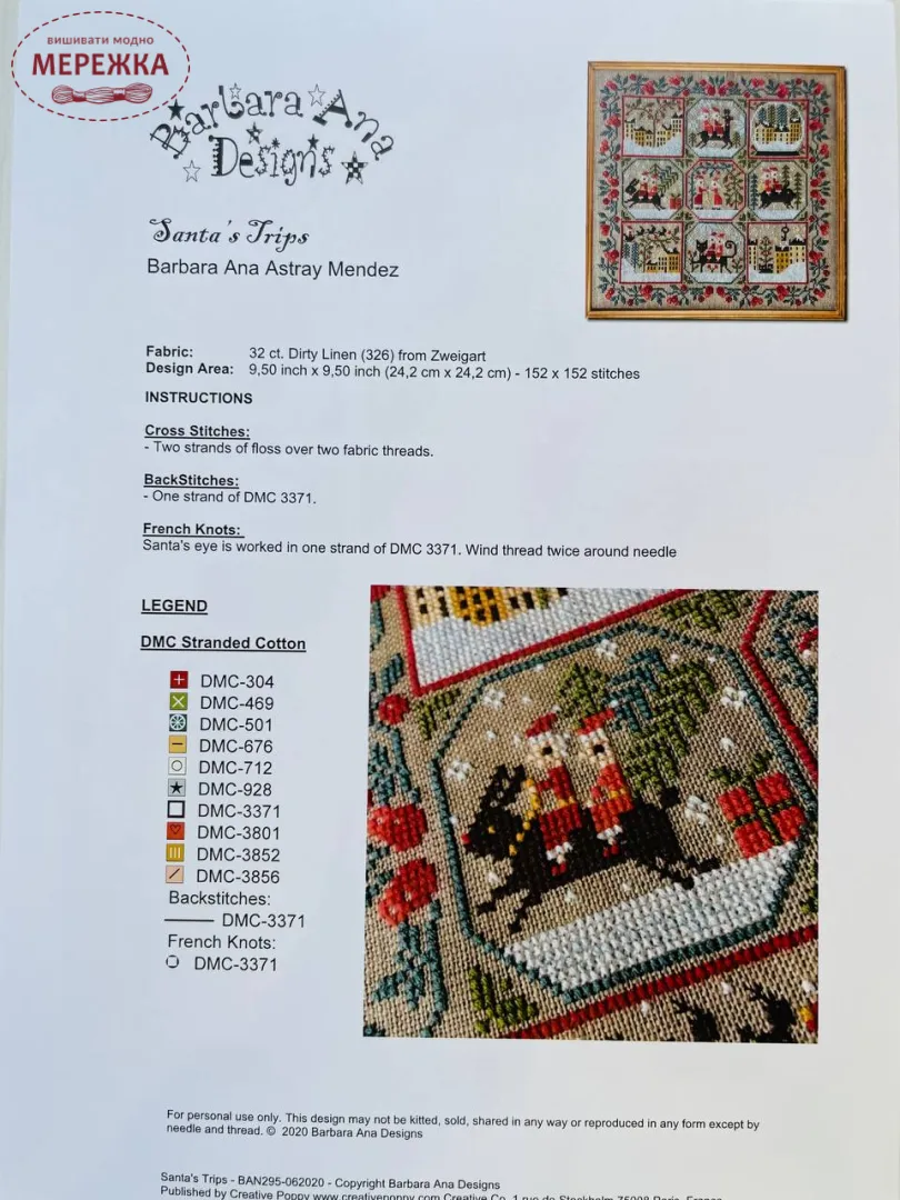 Схема для вишивання від Barbara Ana Designs "Santa's Trips".