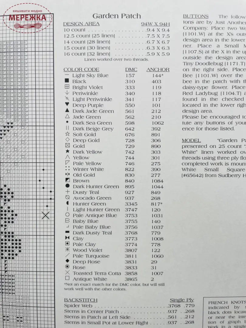 Схема для вишивання від The Cricket Collection "Summer-thyme".