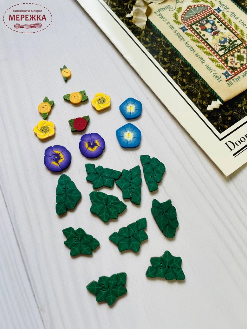 Схема для вишивання від The Cricket Collection "Door Blessing" з паком декоративних ґудзиків.