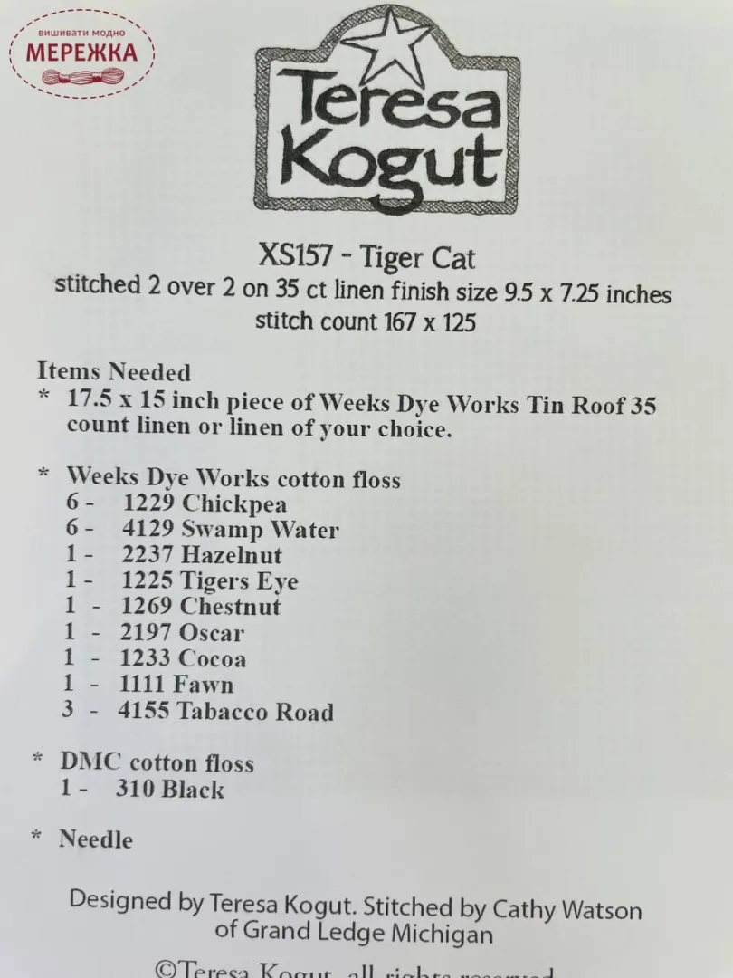 Схема для вишивання від Teresa Kogut "Tiger Cat".