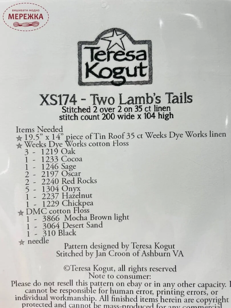 Схема для вишивання Teresa Kogut Two Lamb's Tails XS174
