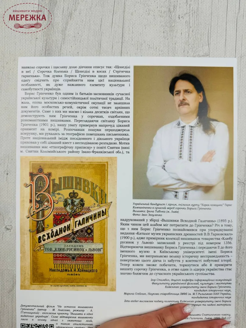 "Вишивка в одязі видатних Українців", схема сорочки Бориса Грінченка