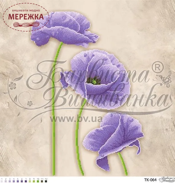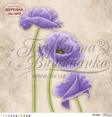 Схема для вишивання бісером ТК064 Тендітні бузкові маки від виробника Барвиста Вишиванка.