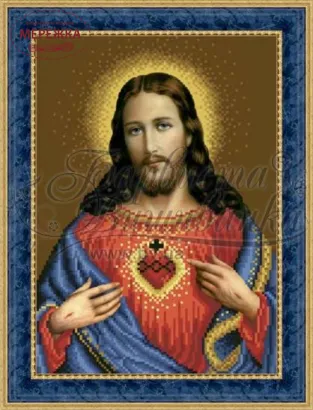 Схема для вишивання бісером на релігійну тематику ТО079 Ікона Відкрите Серце Ісуса від виробника Барвиста Вишиванка.