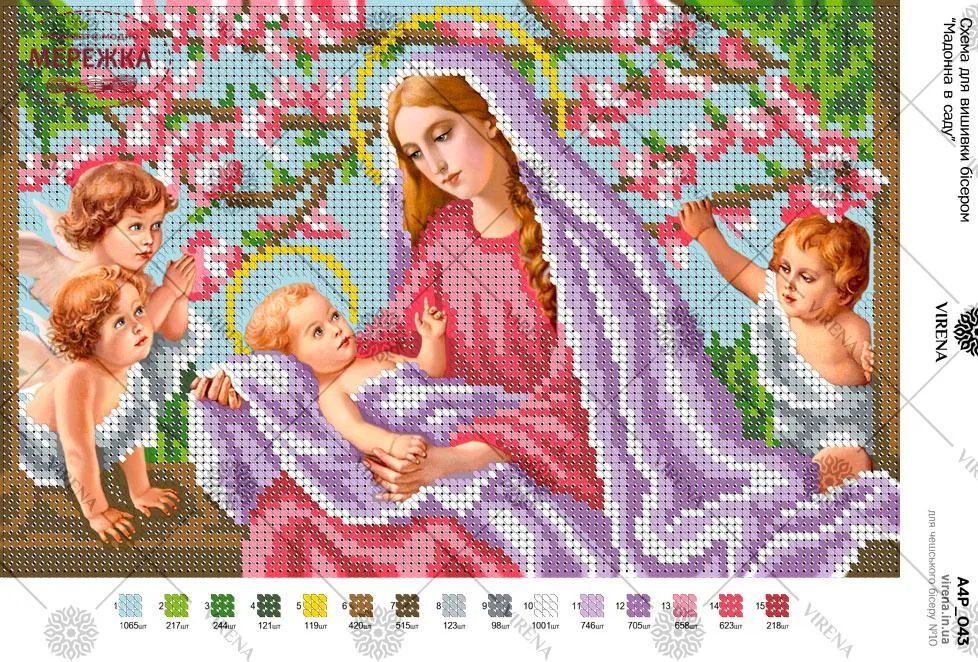 Схема для вишивання бісером VIRENA, Мадонна в саду А4Р_043