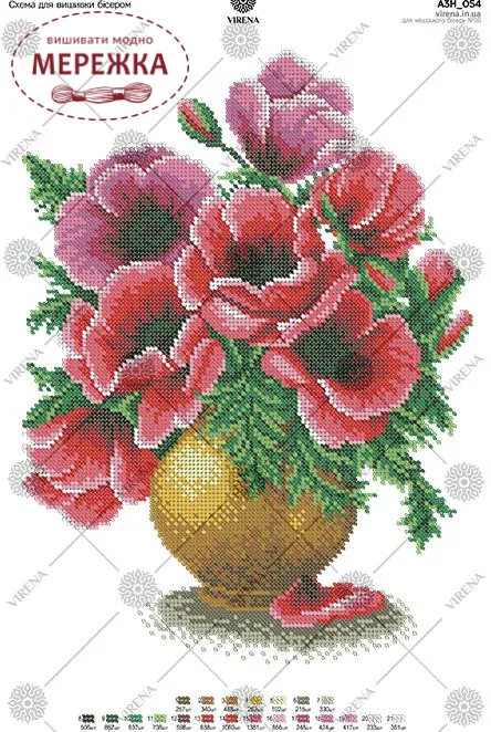 Схема для вишивання бісером VIRENA, Маки А3Н_054