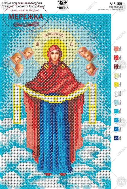 Схема для вишивання бісером VIRENA, Покров Пресвятої Богородиці А4Р_551