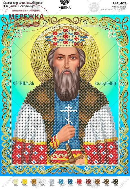 Схема для вишивання бісером VIRENA, Св.Володимир А4Р_402