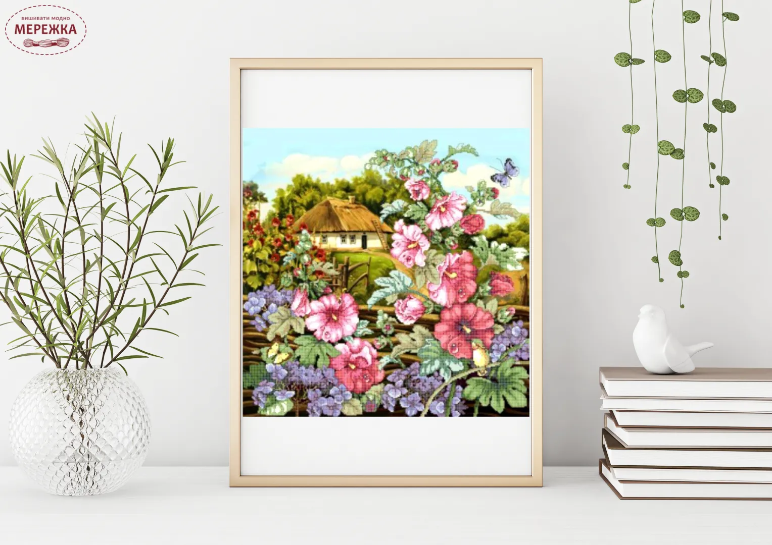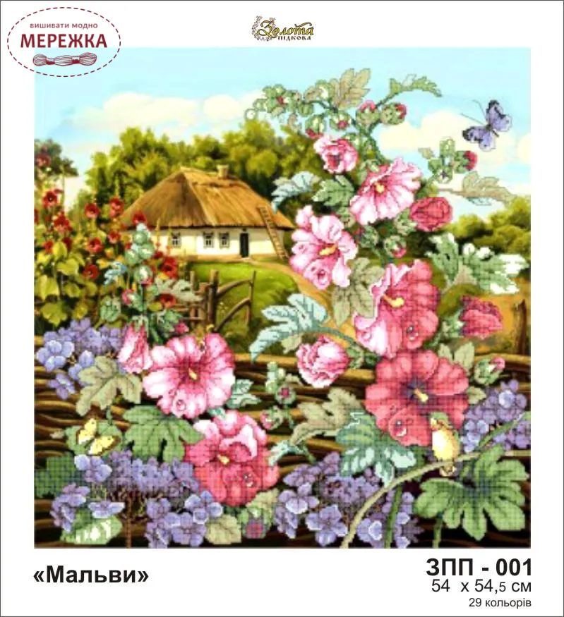 Схема для вишивання бісером "Мальви" - яскравий український пейзаж.