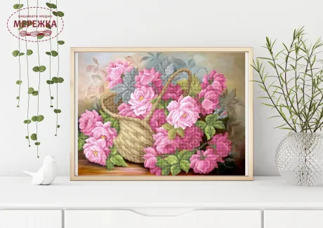 Схема для вишивання бісером "Троянди у кошику" - вишуканий трояндовий букет у кошику.